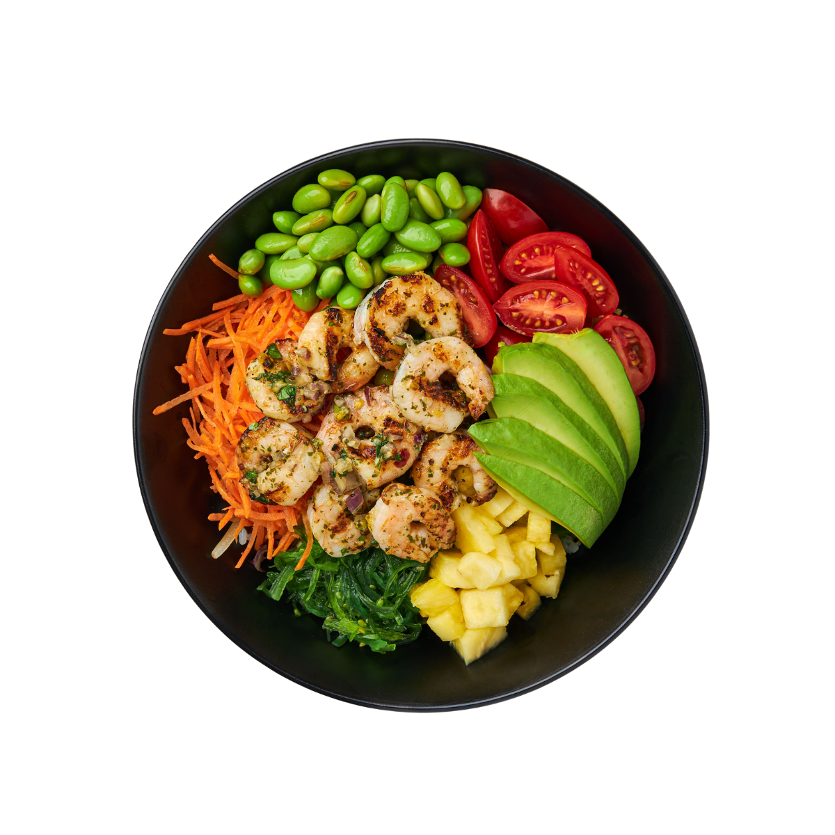 de carrot, mangue, edamame,avocat, wakame, pomme, grain de sésame, nori, masago